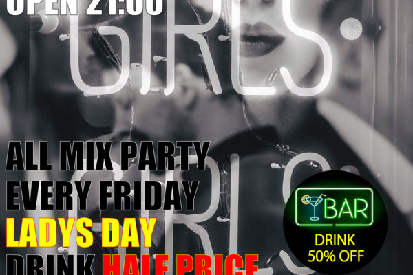 女性のお客様は、ドリンク全品半額です!!!
