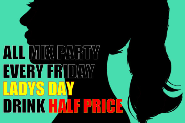 女性のお客様は、ドリンク全品半額です!!!